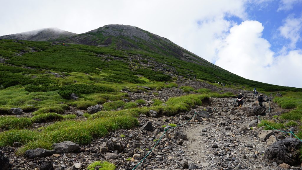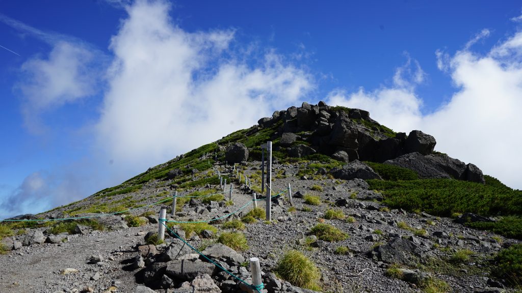さて、最高峰の剣ヶ峰を目指すのですが、畳平から往復30分で登れる魔王岳というピークがあるので、行ってみます!