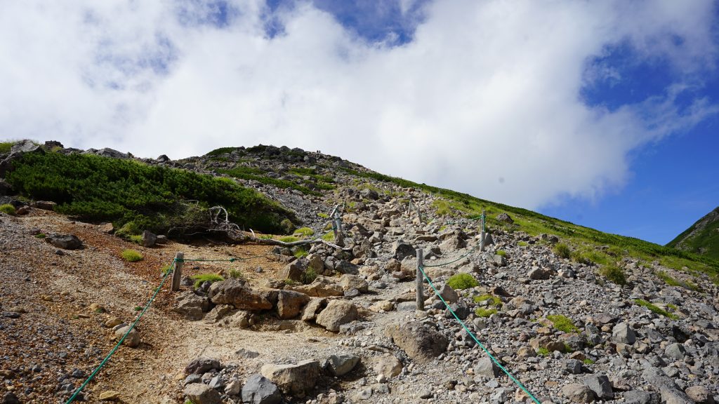 まだキレイに咲いているコマクサ無いかなぁ(無かった(/ω\))、と、キョロキョロしながら登っていると、山頂が見えてきました!