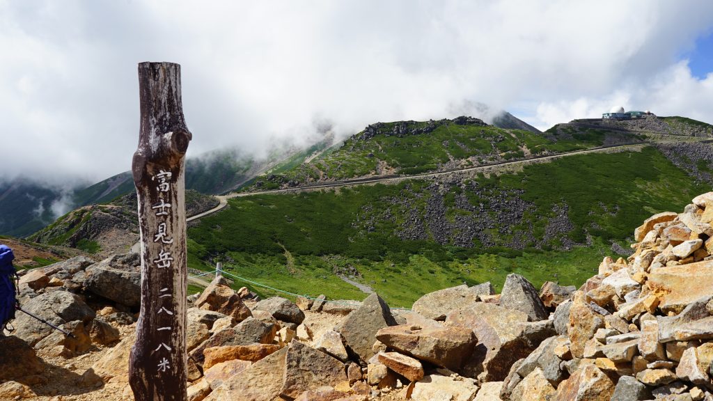 気象観測所は、摩利支天岳(2,872m/頂上までは行けません)の付近です。今回は行きませんでしたが観測所付近からは眼下の「五ノ池」を見下ろす絶景が見られるそうですよ。