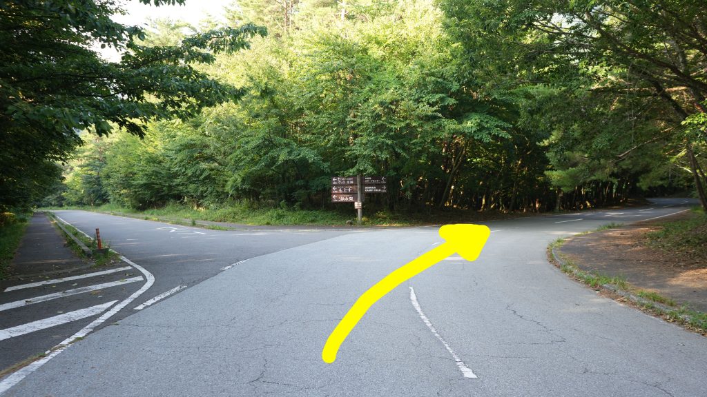 この分岐で、登山道への案内看板は左を差しています。左へ行くと石仏ルートですね。今回は右へ。