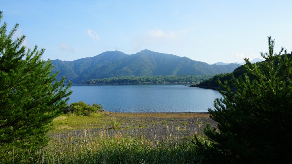 竜ヶ岳は富士五湖のひとつである本栖湖の南岸に位置します。