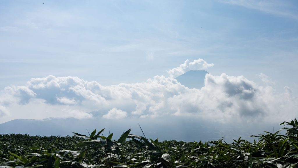 この山の魅力のひとつは、登山道や山頂から迫るように大きな富士山が望めるところです。