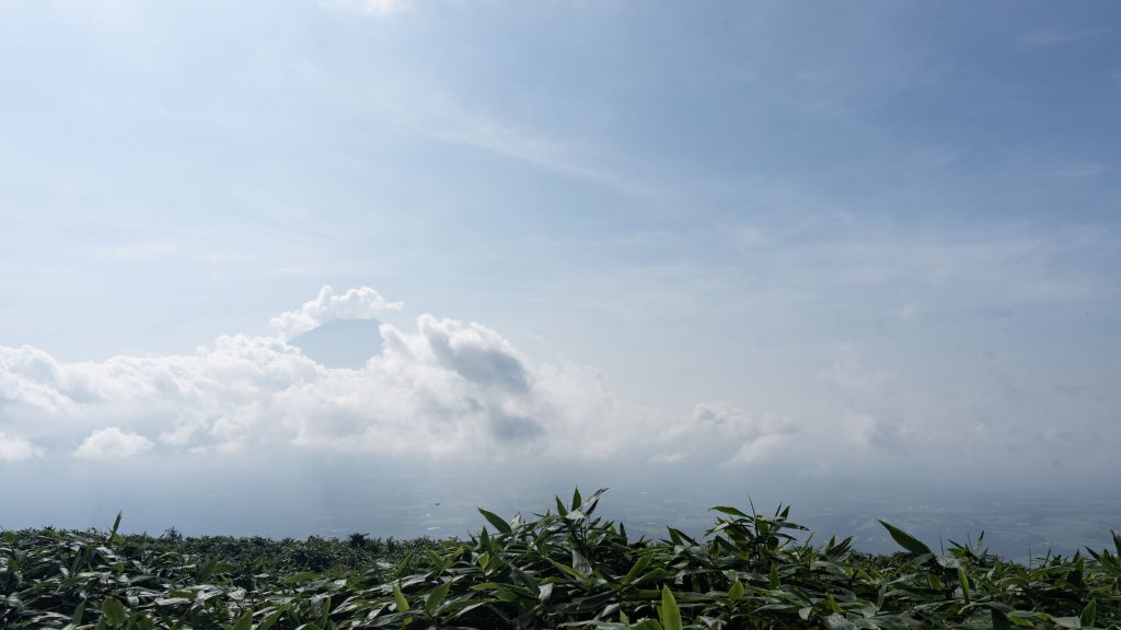 雲をかなり纏っていますが、てっぺんがちらりと見えました!