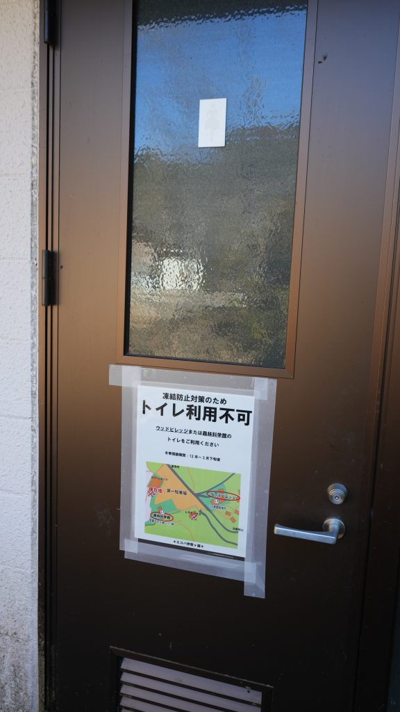 森林科学館のトイレは建物内にあります。出入口が外と面していないので、比較的寒く無く、虫などの侵入も少ないと思います。