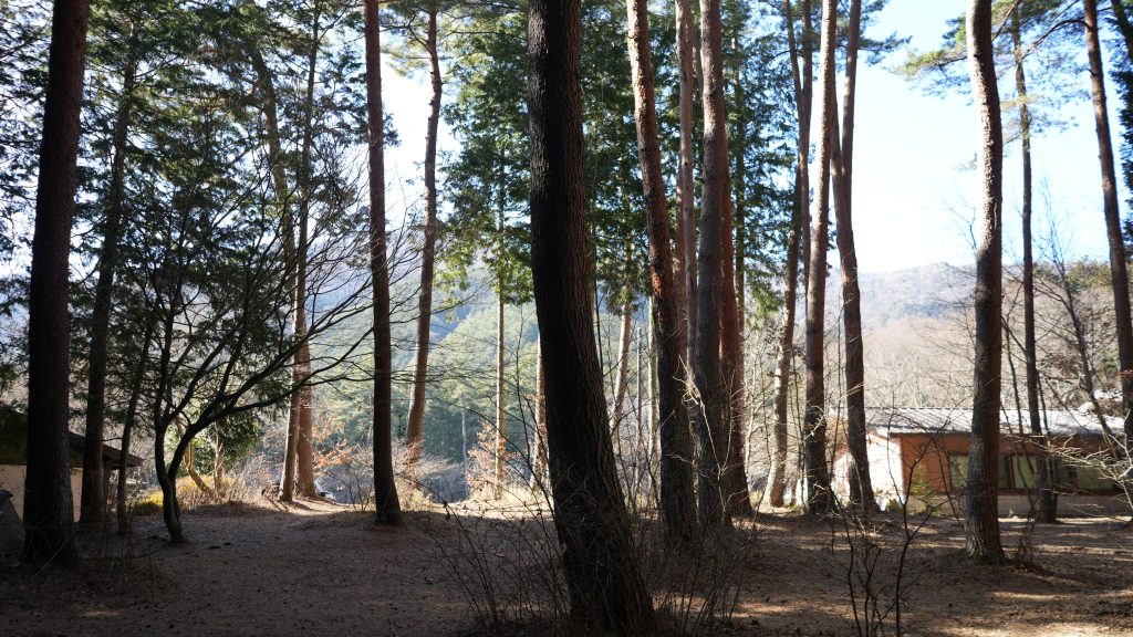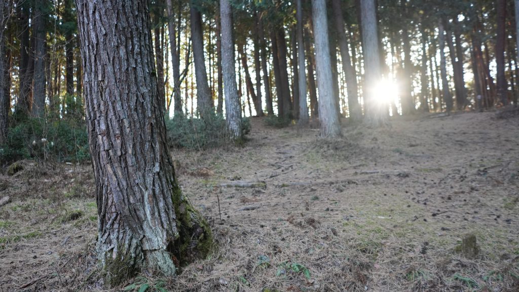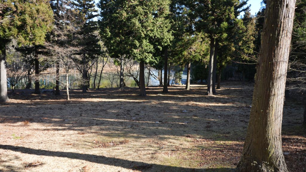地面は土。季節によりそうですが、針葉樹の枯れ葉が一面に落ちています。