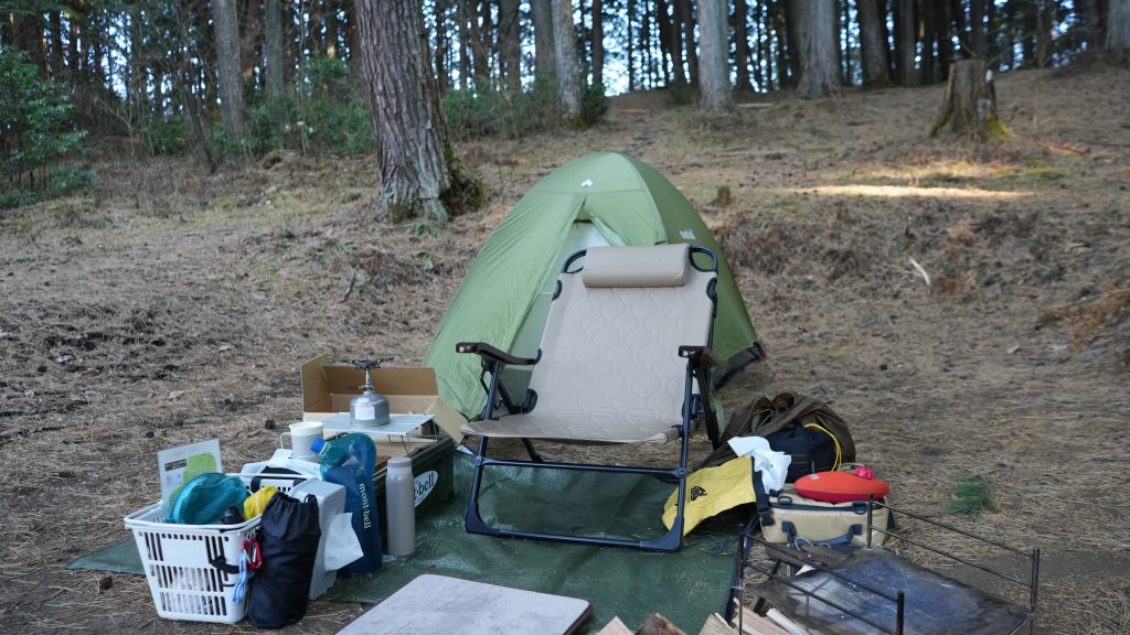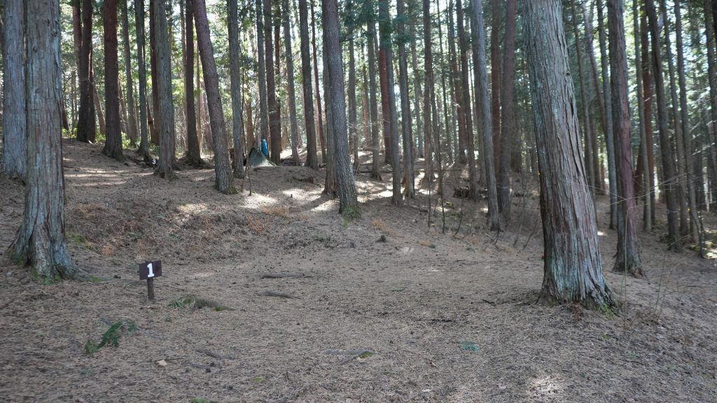 先述の通り、全体的に傾斜地なので、寝床の向きは実際に寝転んでみるなどして確認しながら設営するのをオススメします。