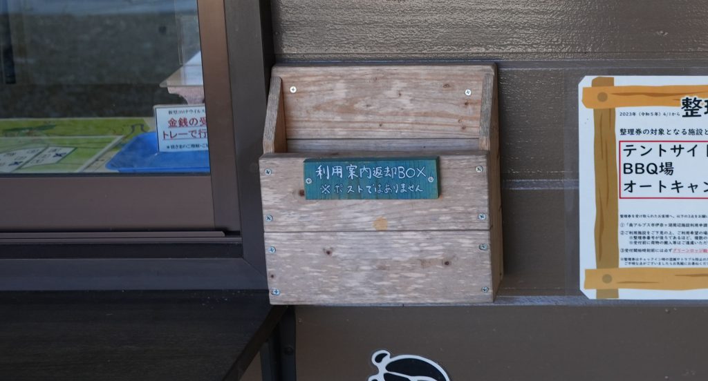受付が開いていない時間にチェックアウトする場合でも、返却する場所はあるので安心です(^^♪。
