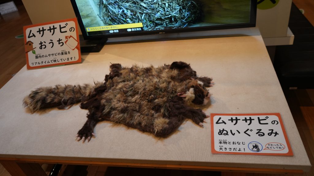 ↑ムササビのぬいぐるみ。視界に入った時、びっくりしました!「カエルの解剖」みたく、”開いている”のかと思って( ゚Д゚)。