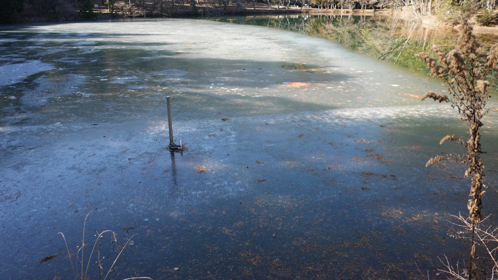 日当たりが悪い場所は湖面が凍結していました( ゚Д゚)!
