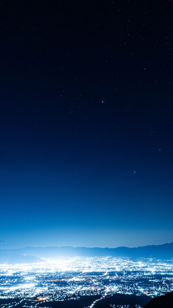 夜景(^^♪。こりゃ、たまりませんね!!空に星、地上に街の灯り。