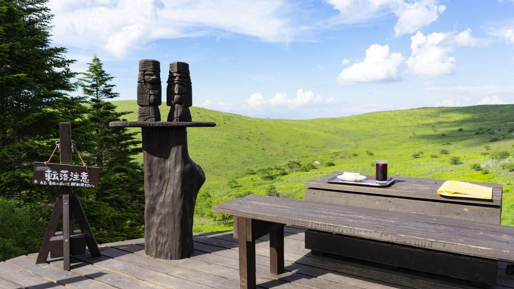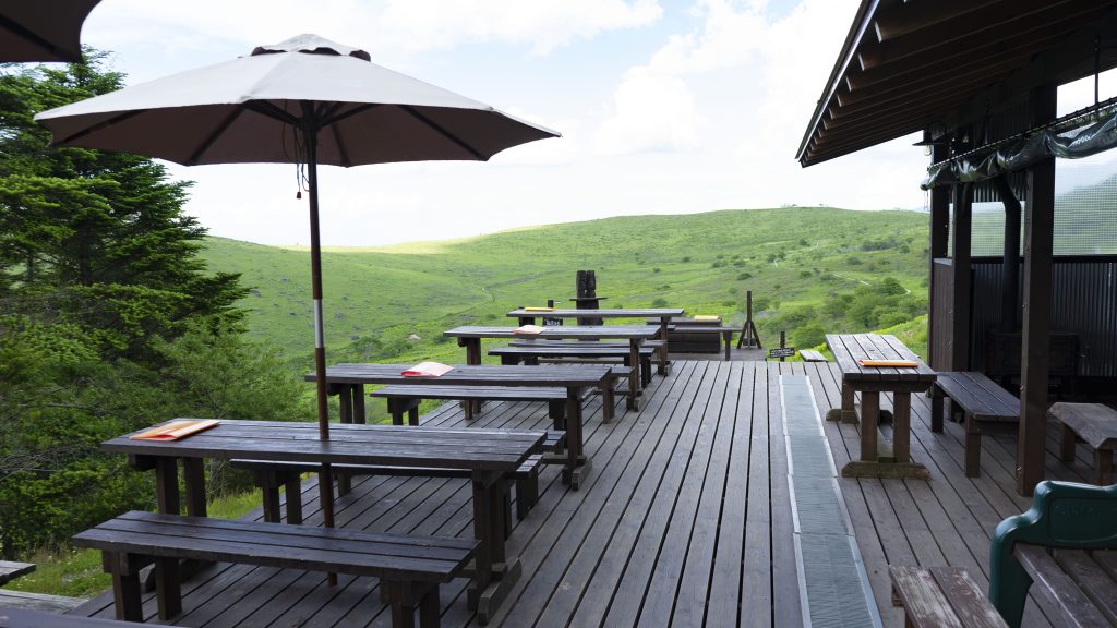 1956年から営業する老舗の山小屋(^^)/。無雪期は、カフェを営業しています。高原を眺めるテラス席もある、絶景を楽しめるカフェです!!