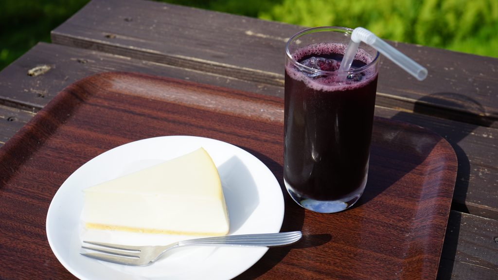 ということで、冷たい「ぶとうジュース」と「ニューヨークスタイルチーズケーキ」を注文!