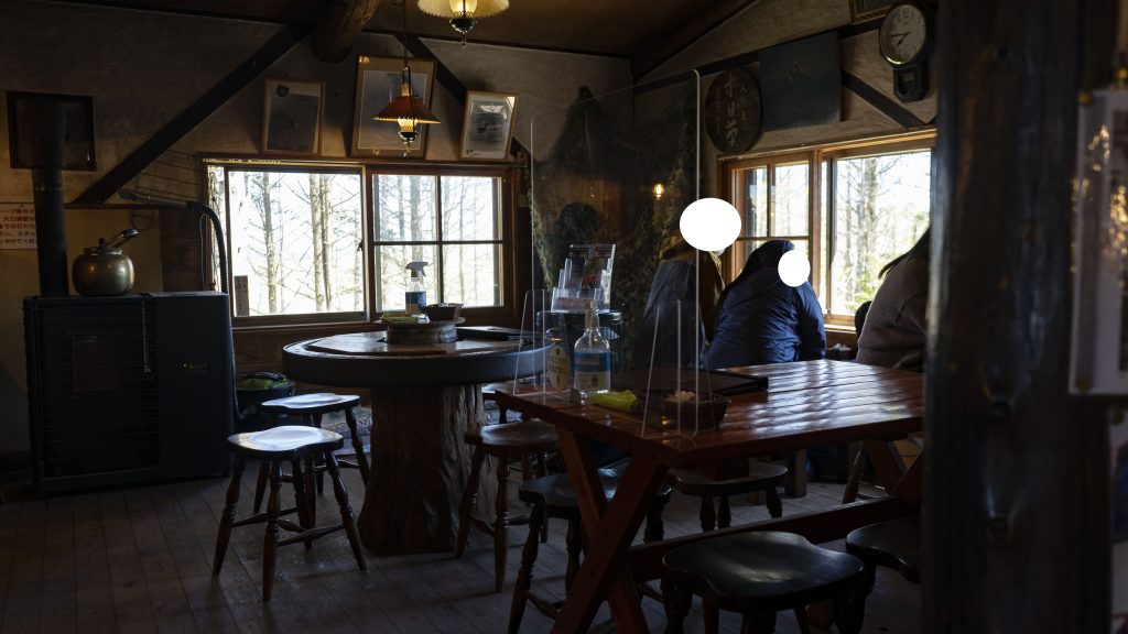 ちなみに、ゆるキャン△でリンちゃんが座ったのは、この↑写真の丸いテーブルですね。お店の奥です。ここでも良いのですが、、、