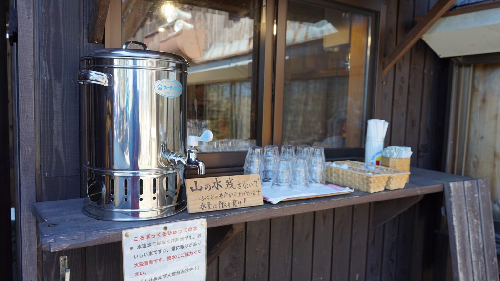 ちなみに、「お水」は、ふもとの井戸から上げている山の水を飲めます!セルフサービススタイルです。