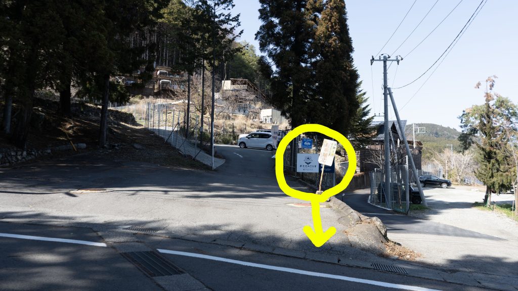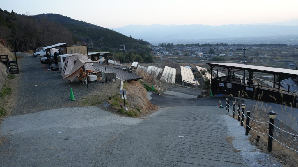 駐車場の脇から続く登り坂を上がると、すぐにキャンプサイトです。