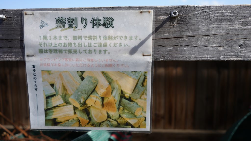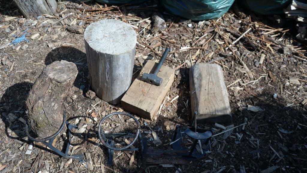 固い広葉樹の薪ですが、薪割台とハンマーを借りられるので、自前の装備が無くても、無理なく薪割できます!