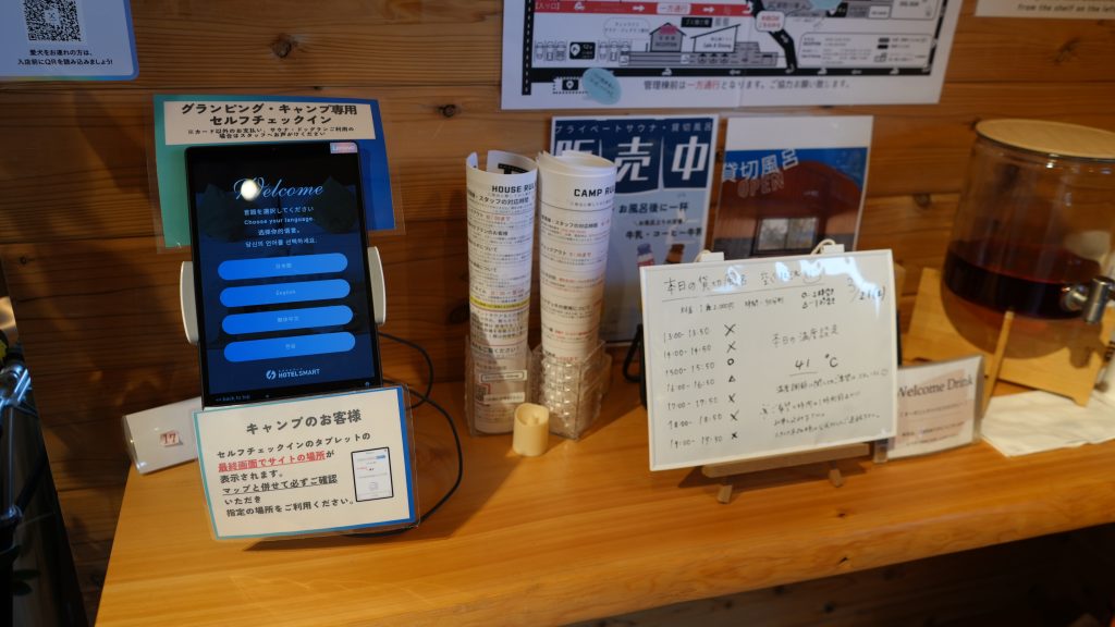 さて、脱線しましたが、チェックインをしましょう。これ↑も珍しい。タッチパネルによるセルフチェックインです。なっぷで事前予約を済ませていれば、こちらでチェックイン可能です。