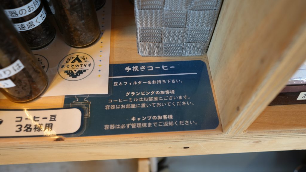 コーヒー豆もアメニティ?としてありました!ただし、豆とフィルターはもらえますが「コーヒーミル」は貸出が無いので、利用したい場合、持参しましょう!