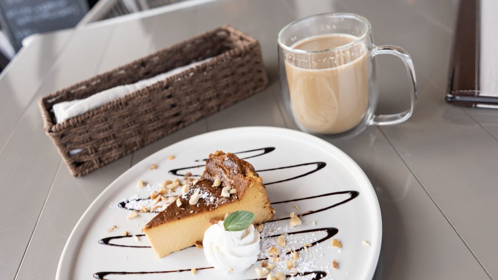 食事はキャンプ飯の準備があるので、チーズケーキとカフェオレ(だったかな?)だけ頂きました!