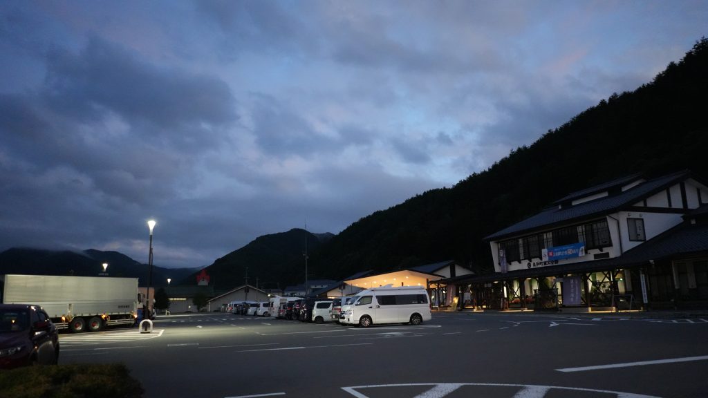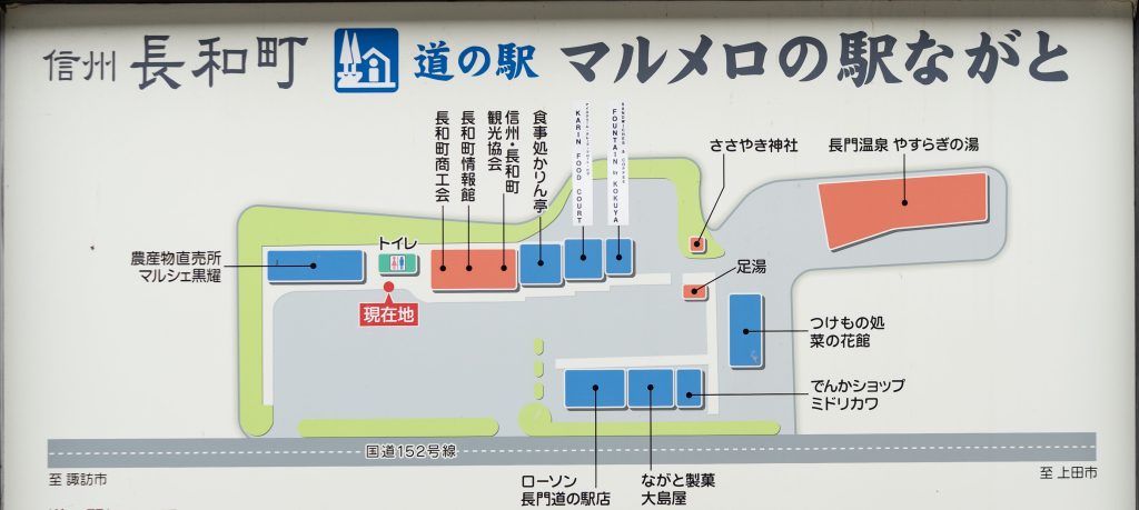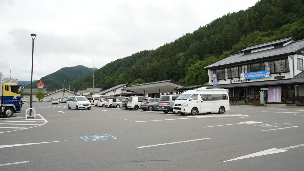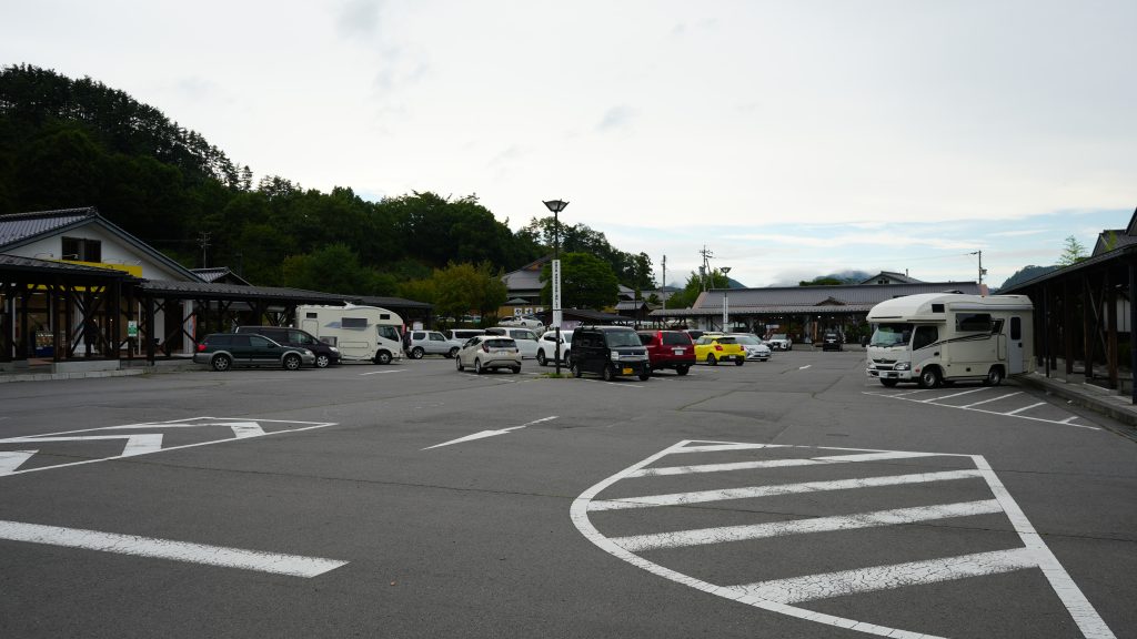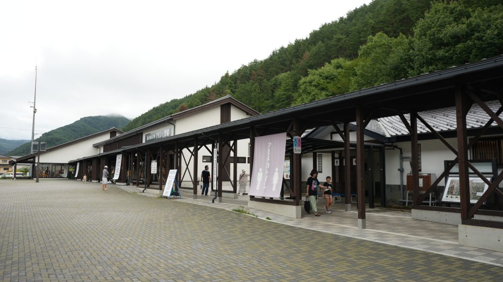 9月半ば。曇り時々雨。この日は長野県の道の駅巡りをして、そのラストに訪れた道の駅です。何故、この駅が「ゴール」なのか・・・?それは、温泉があるからです(^^)/。