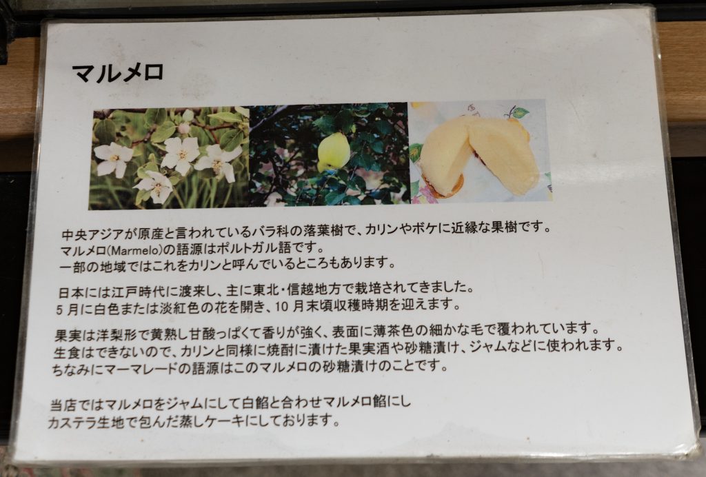 さて、ここで道の駅の名前にもある「マルメロ」の説明POPがあったので、許可もらい撮影させてもらいました。