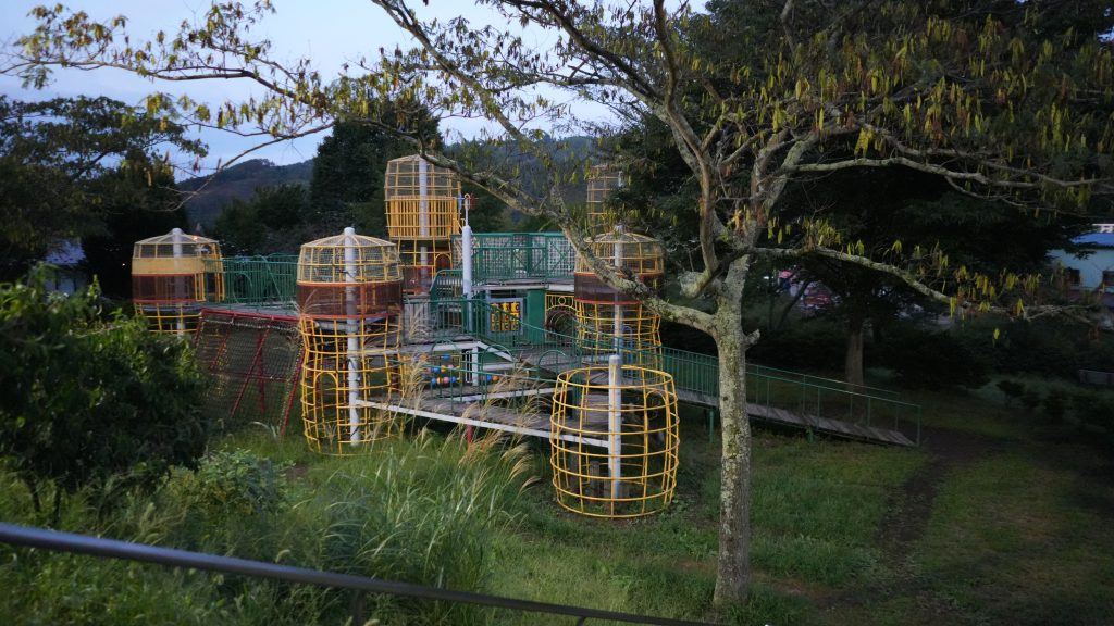 目の前には遊具のある公園があり、そちらに降りられるみたいです!