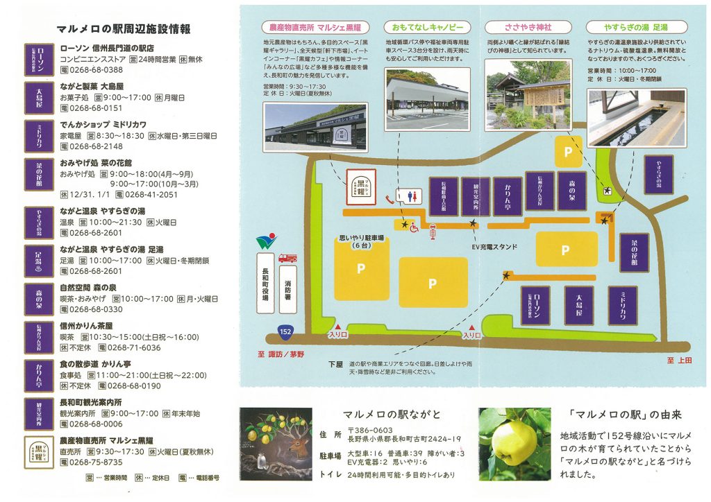 | H.P. | 道の駅マルメロの駅ながと 直売所/マルシェ黒曜 温泉施設/長門温泉やすらぎの湯 |