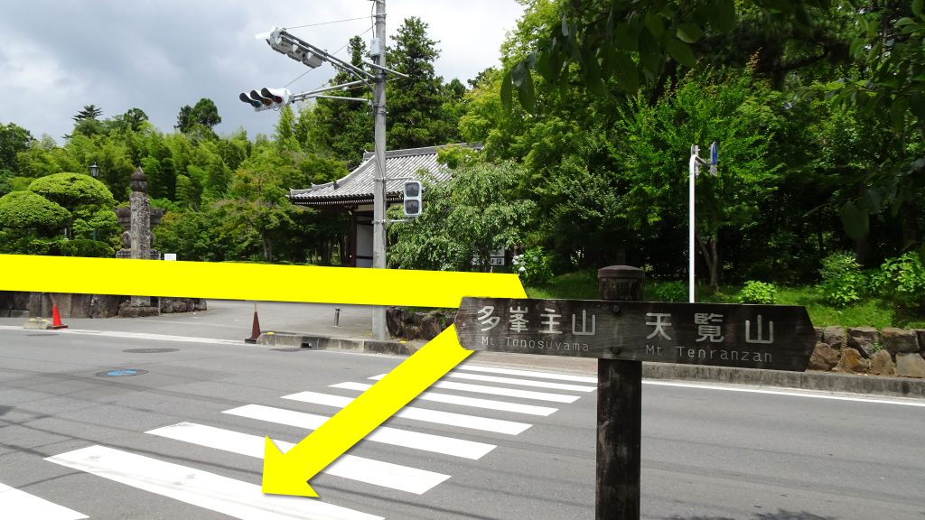 先ずは天覧山に行きたいので、ここは右へ。道路も渡ってしまいます。