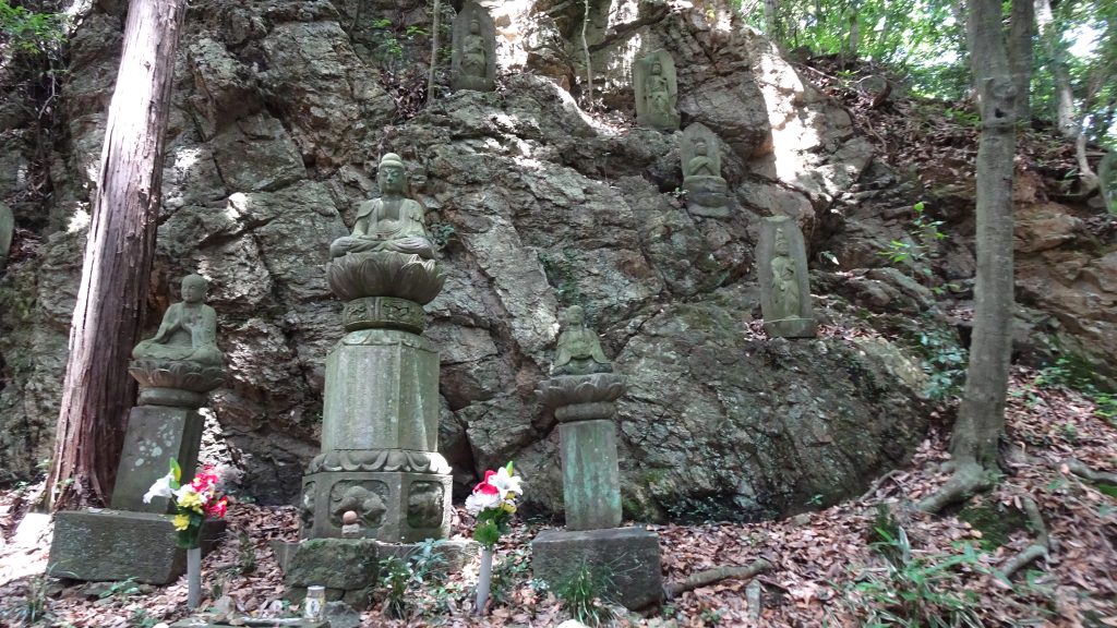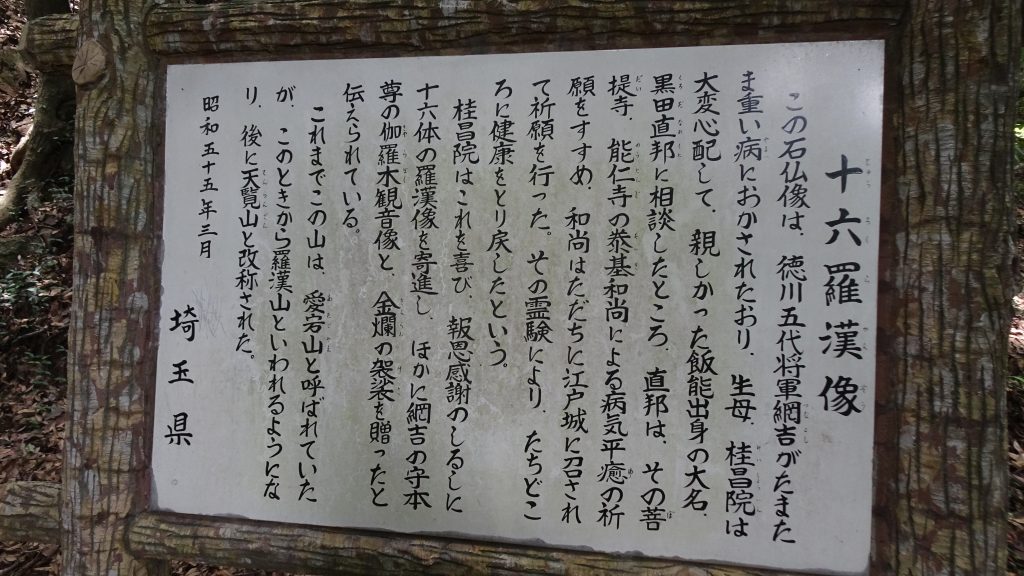 岩壁に石仏が配置されていました。由来などは上の説明看板の画像を参照。。。天覧山の名前の変遷なども分かって、興味深い(^^♪。