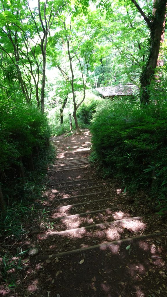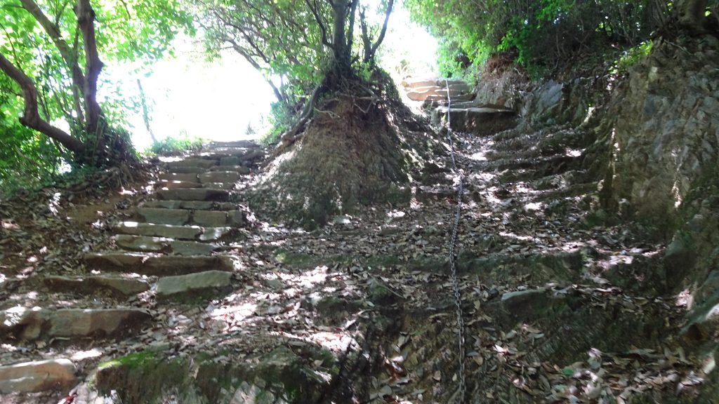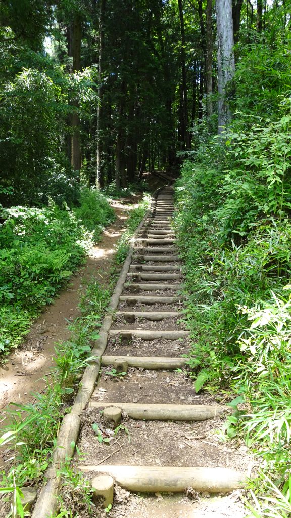 急な坂(階段)を登り、ほぼ平坦な道に。。。そして、また階段になるので、、、