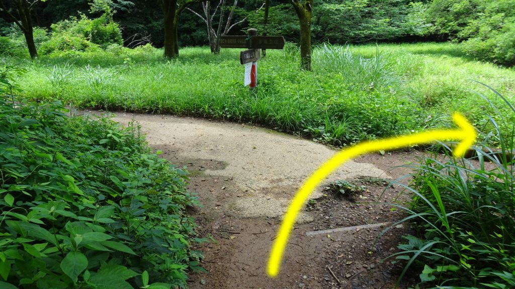 左に行くと天覧山に戻りますが、今度は直進します。天覧山を経由せずに、駐車場に戻れるルートです。