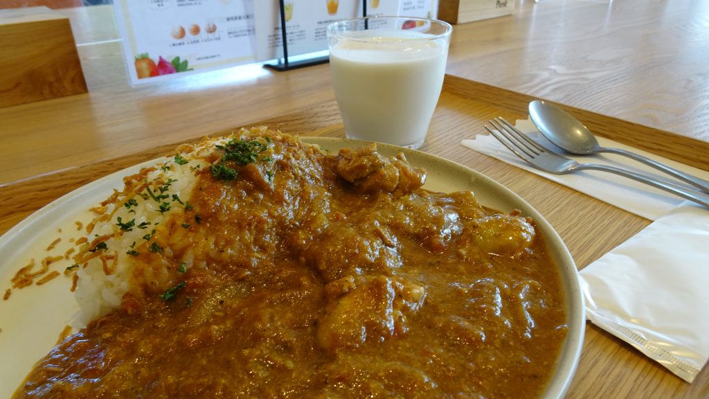 頂いたのは、チキンカレーと、ヨーグルトドリンク!