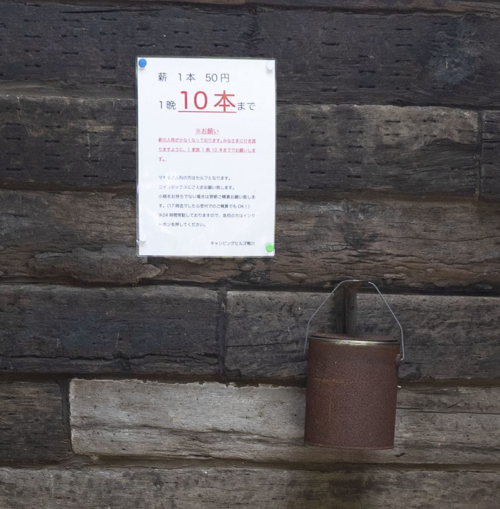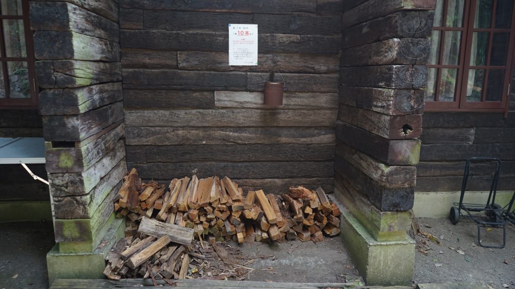 薪も受付で購入しました。針葉樹です。1本50円のバラ売り!珍しい。。。1晩につき、10本まで。薪の入荷不足だそうで、本数制限がかかっていました(^^ゞ。