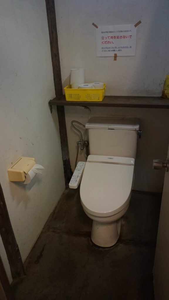 便器自体はウォッシュレット付きでキレイ(^^)/。ですが、密閉性はいまいちで、夜は大きい蛾とかが侵入していて、びびります(笑)。