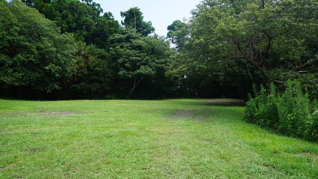 基本的に芝生の平なサイトです。各サイト毎に高低差があり、丁度「棚田」のような作りになっていました。周辺は山なので、林間サイトっぽいですが、サイトが広けているので、背の高い木々に囲まれているような感覚は無いですね。