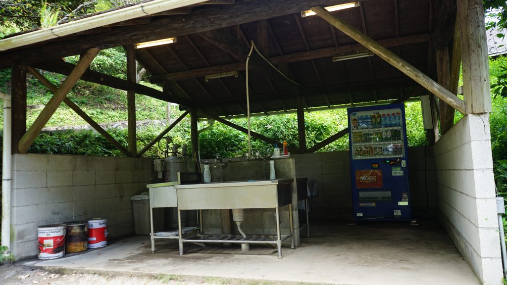 ※水場は2か所ありますが、自販機とゴミ捨て場があるのは、受付側のみです。