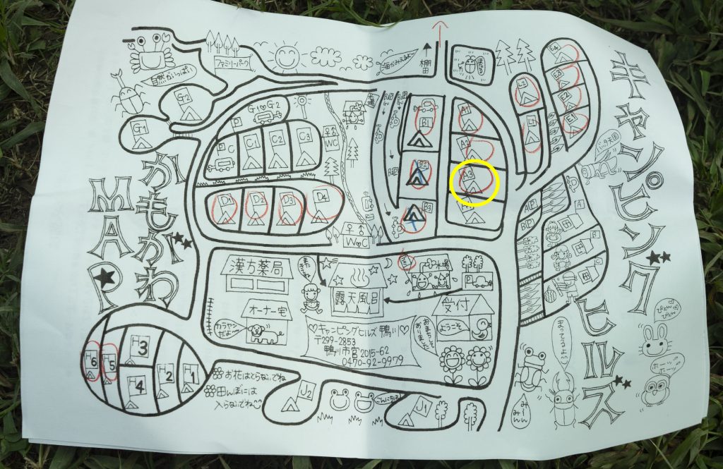 そして、サイト選び。オーナーの意向で、一度受付を出て、場内を周ってもらい、実際に見てから決める…という流れになっていました。