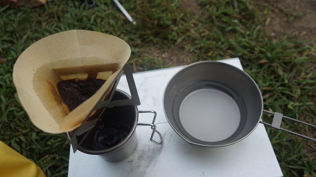 注ぎ口が付いたシェラカップを好日山荘で見つけて、衝動買いしました(^^ゞ。
