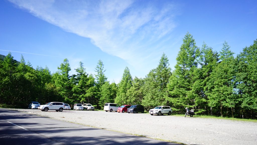 写真の通り、結構広い駐車場ですが、夏山シーズンでは満車になりがちらしいです。下山した13時頃は、満車では無かったものの、空が少ない状態だったので、特に休日利用の場合は注意したいですね。
