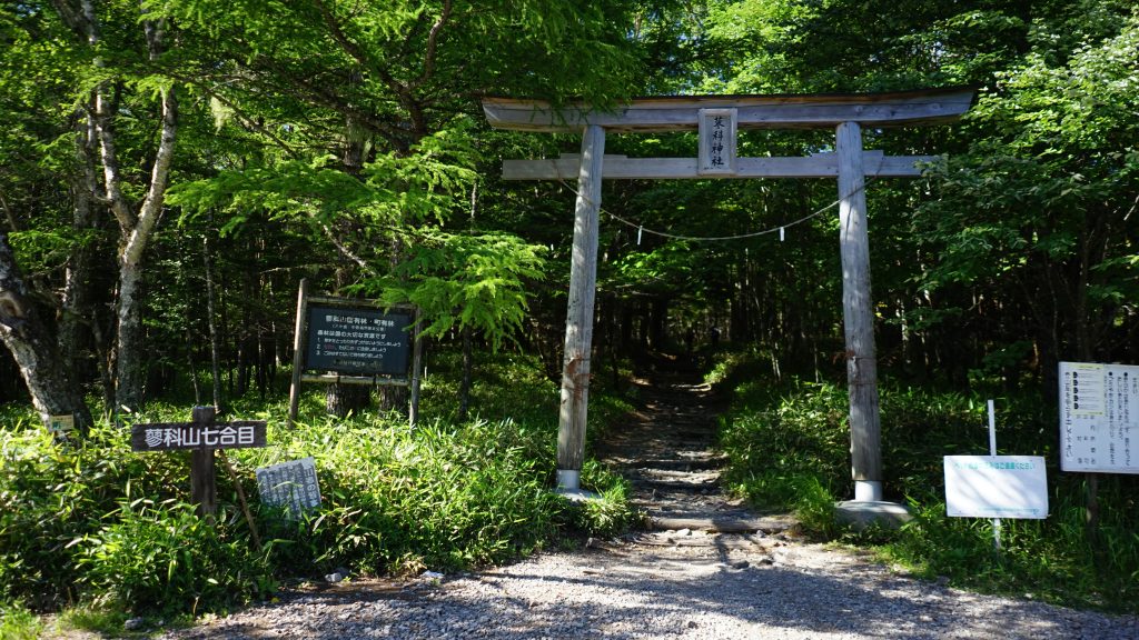 登山口です。頂上には「蓼科神社」の奥宮があるので、鳥居が建っているのでしょう。…それにしても、七合目からなんて、得した気分です(^^♪。