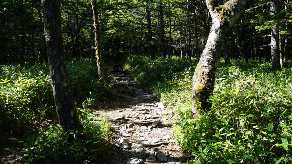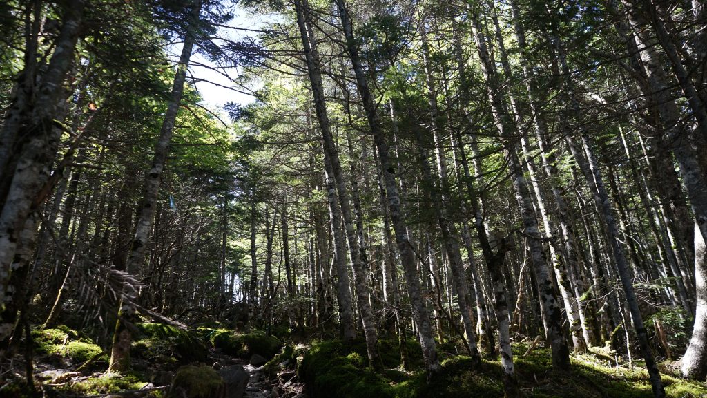 やがて、背の高い木が減り、「ハイマツ(地を這うように生育している高山植物)」が目立って来ます。