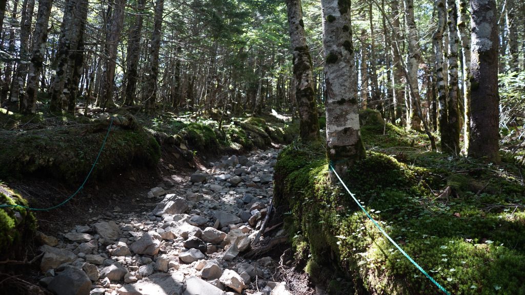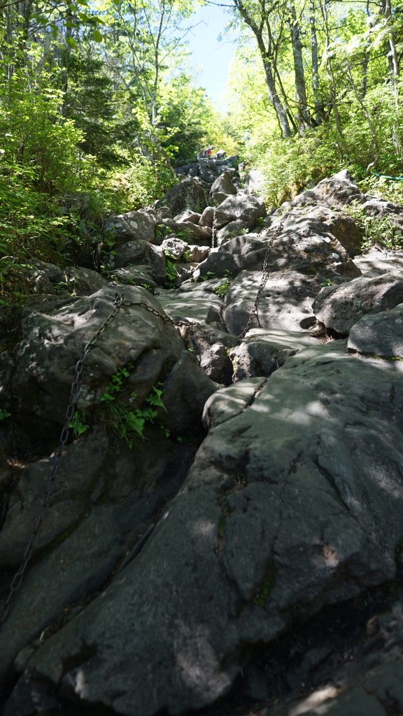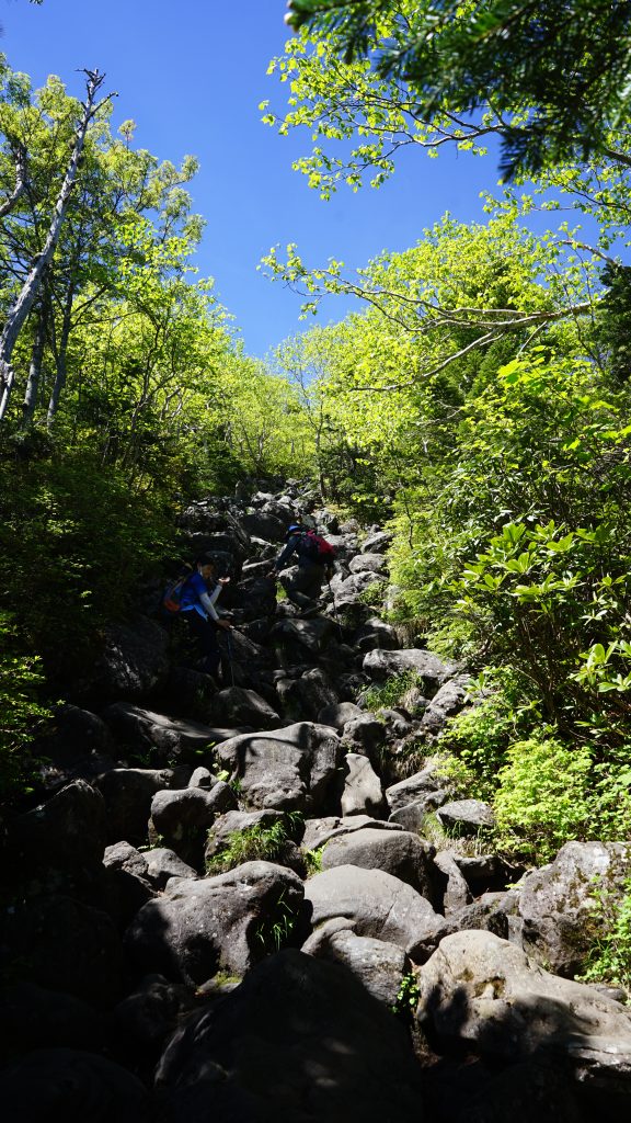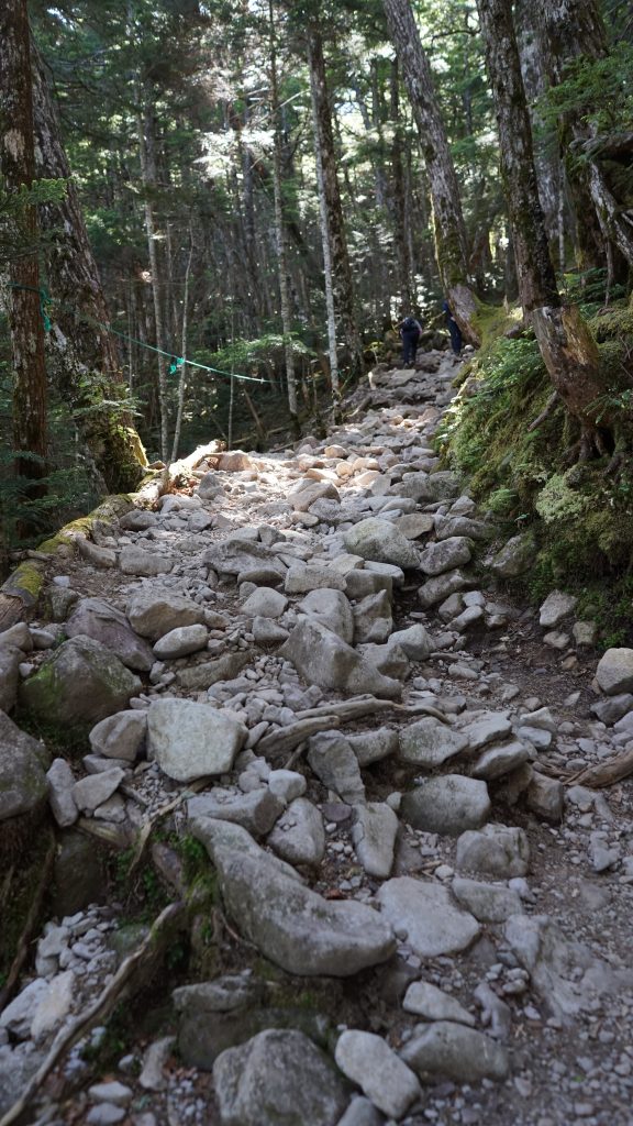 暫くすると、石がゴロゴロした道になり、傾斜もキツくなってきます。