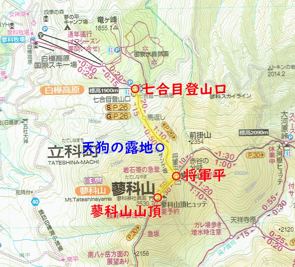 - 将軍平~蓼科山山頂(50分)